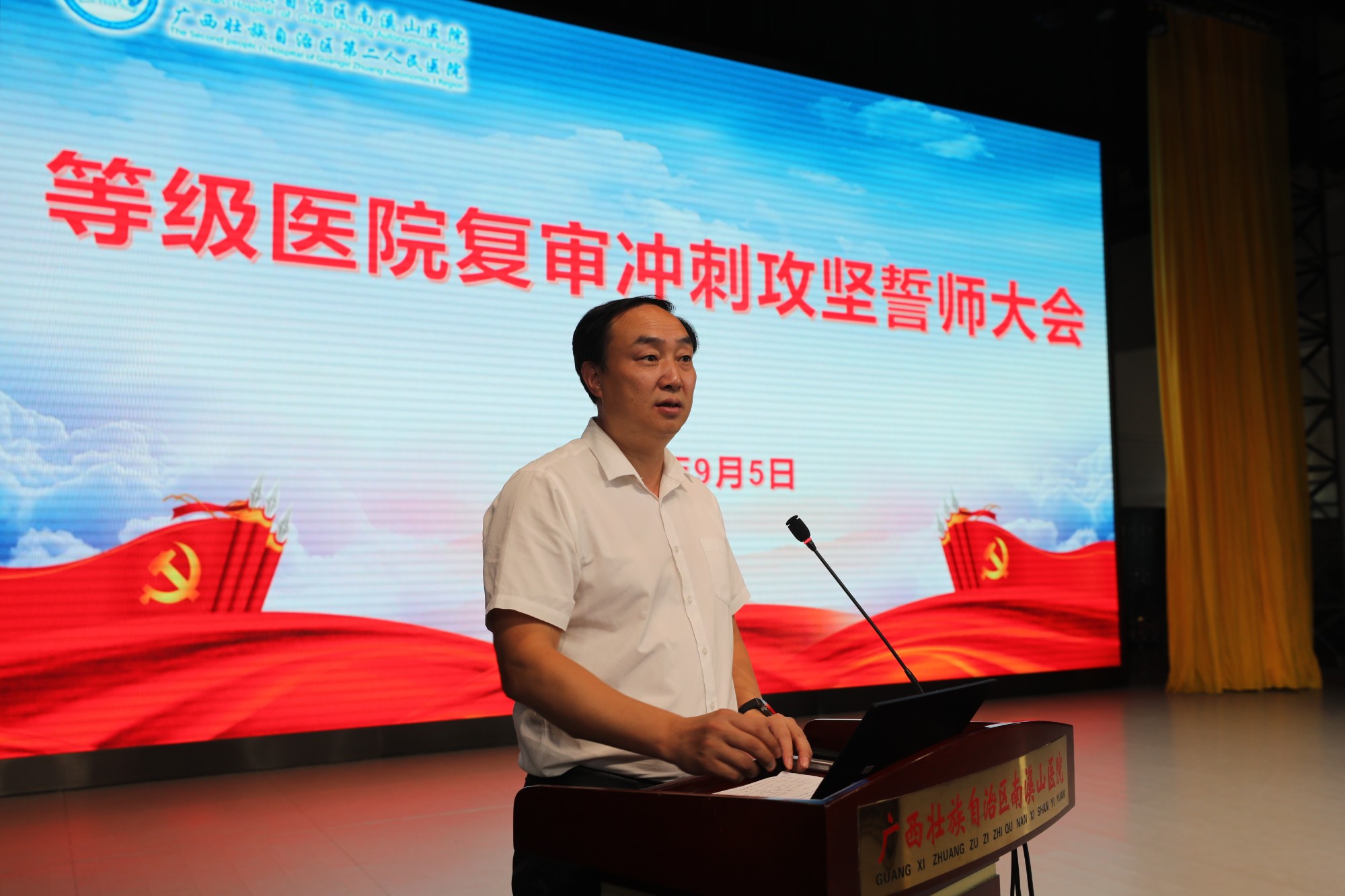 为做好等级医院复审冲刺攻坚阶段的工作,9月5日,广西壮族自治区南溪山医院举行等级医院复审冲刺攻坚誓师大会,对“三甲”复审迎检工作进行再动员、再部署。该院党政班子领导成员、全院中层干部出席大会。