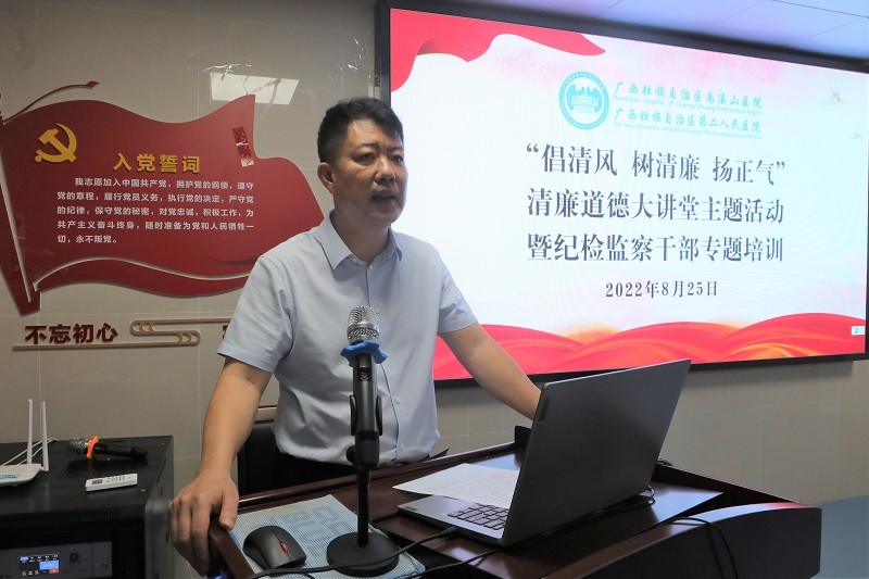 为进一步提升医院纪检监察干部履职担当能力,切实发挥好纪律检查委员的“前沿哨兵”作用,实现执纪监督关口前移,扎实推进清廉医院建设。8月25日,广西壮族自治区南溪山医院党委、纪委举办清廉道德大讲堂暨纪检监察干部专题培训,医院纪委书记喻泽军出席会议,全院纪委委员、各党支部纪律检查委员60余人参加了本次培训,监察室主任蒋玲主持会议。