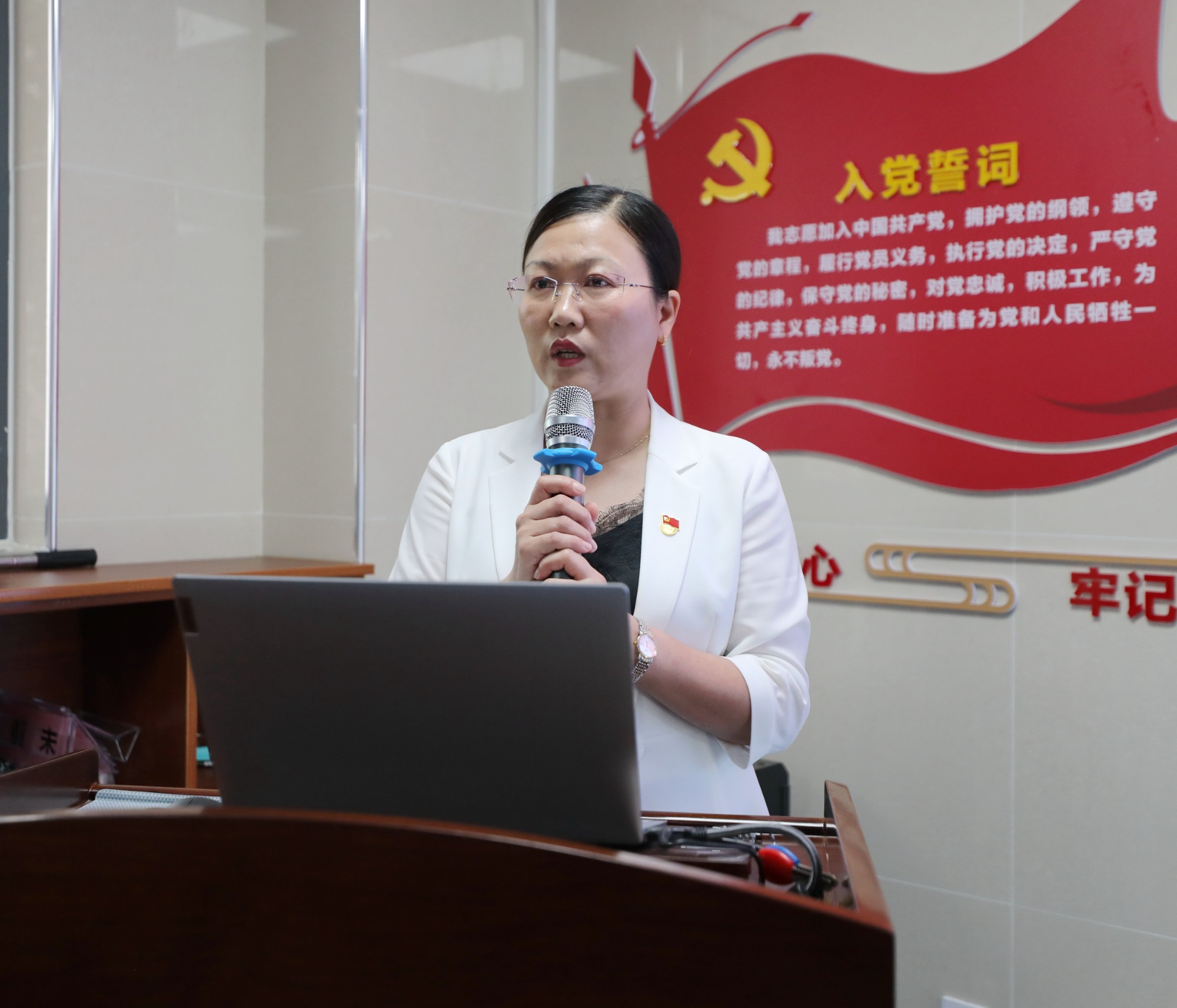 唐芬副院长围绕开展本次主题教育的重大意义、目标要求,如何深入推进主题教育的扎实开展,以及开展好主题教育的工作要求共四个方面为党员们深入浅出地讲解,指出深入学习贯彻习近平新时代中国特色社会主义思想要深刻领会其精神实质和丰富内涵,需要用党的创新理论统一思想、统一意志、统一行动,牢记“三个务必”,即全党同志务必不忘初心、牢记使命,务必谦虚谨慎、艰苦奋斗,务必敢于斗争、善于斗争。