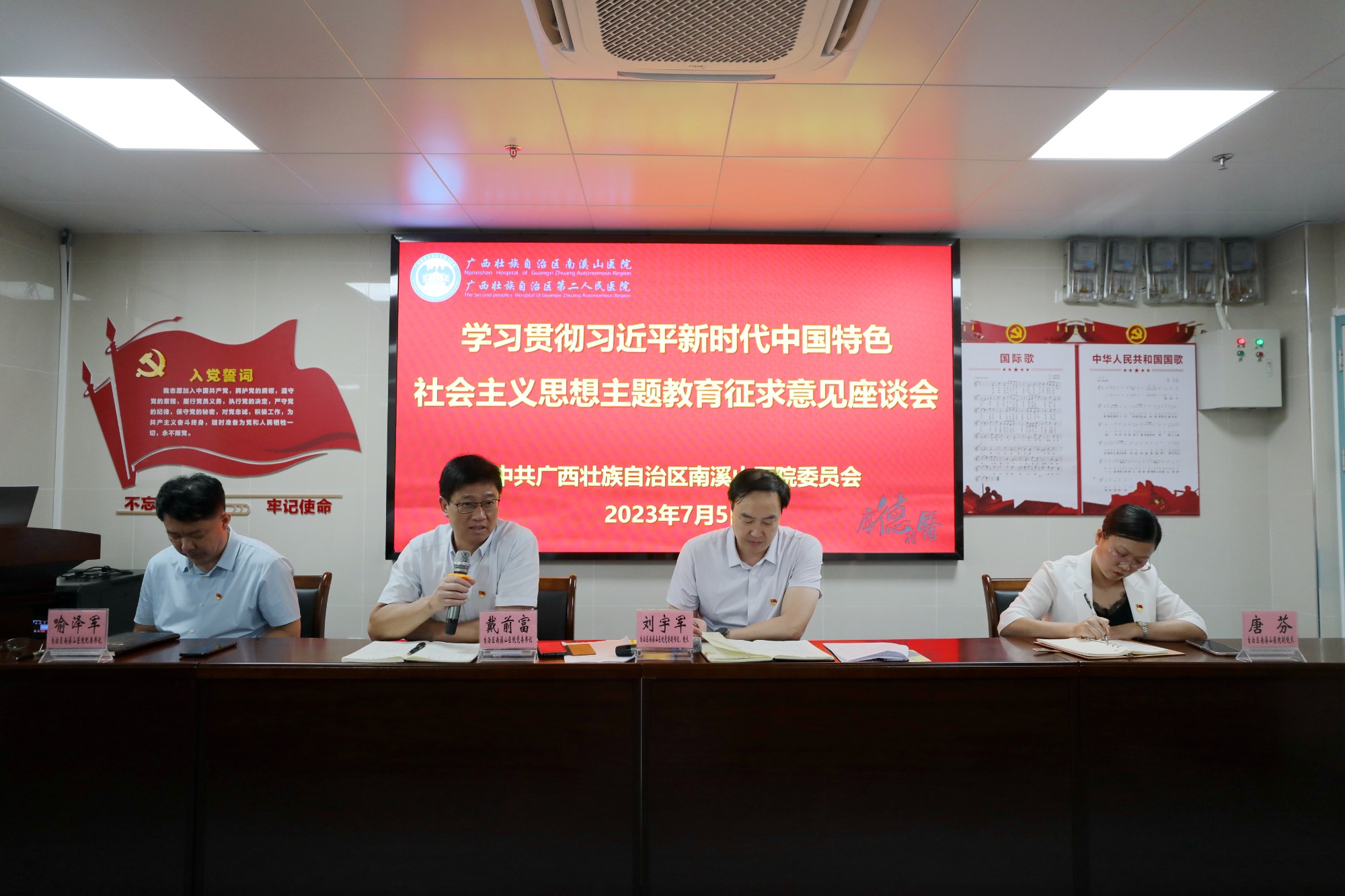7月5日,广西壮族自治区南溪山医院党委召开学习贯彻习近平新时代中国特色社会主义思想主题教育征求意见座谈会。医院领导班子认真听取各方意见,深刻检视存在问题,积极回应职工关切的问题,共谋医院高质量发展,确保主题教育取得实效。