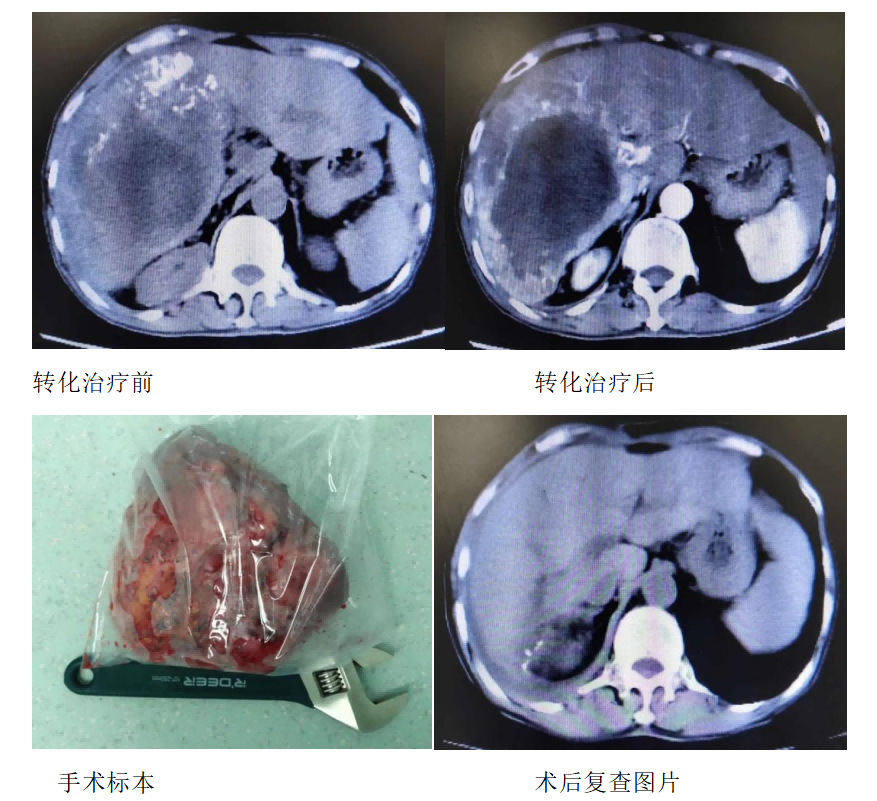 综合治疗:我科对巨大肝癌通过各种治疗手段相结合从而使肿瘤坏死缩小,转化降期达到手术切除标准,从而切除肝癌。
