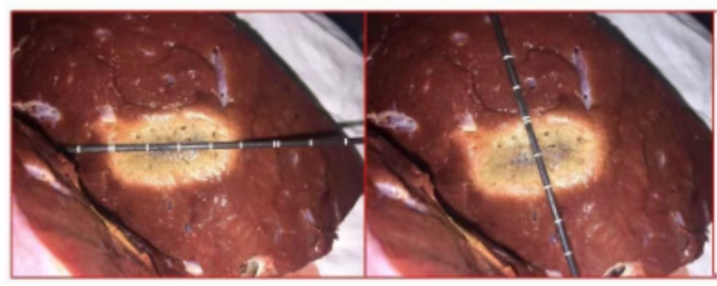 射频消融术(RFA):是射频电极的射频波产生热量导致局部高温快速地杀死局部肿瘤细胞,同时高热能使肿瘤周围的血管组织凝固形成一个反应带,使肿瘤供血阻断防止肿瘤转移。一般针对肿瘤比较小、个数不多的肝癌进行治疗。单个肿瘤在3公分以下适合射频消融