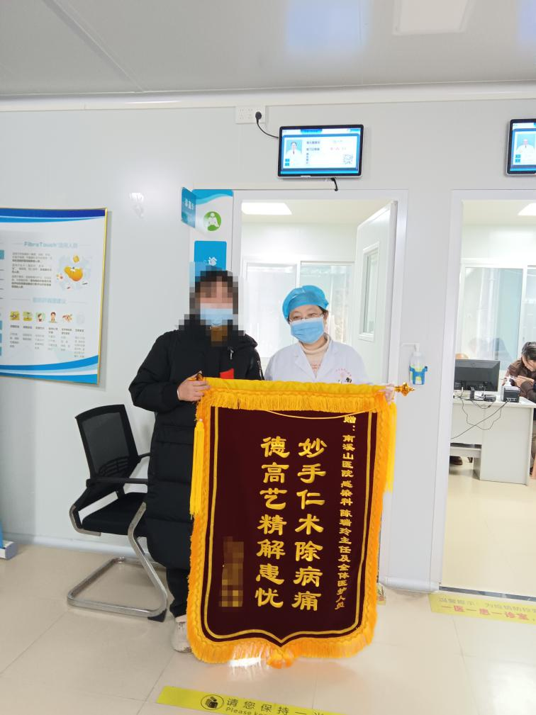 小张母亲到门诊给陈瑞玲医师赠送锦旗