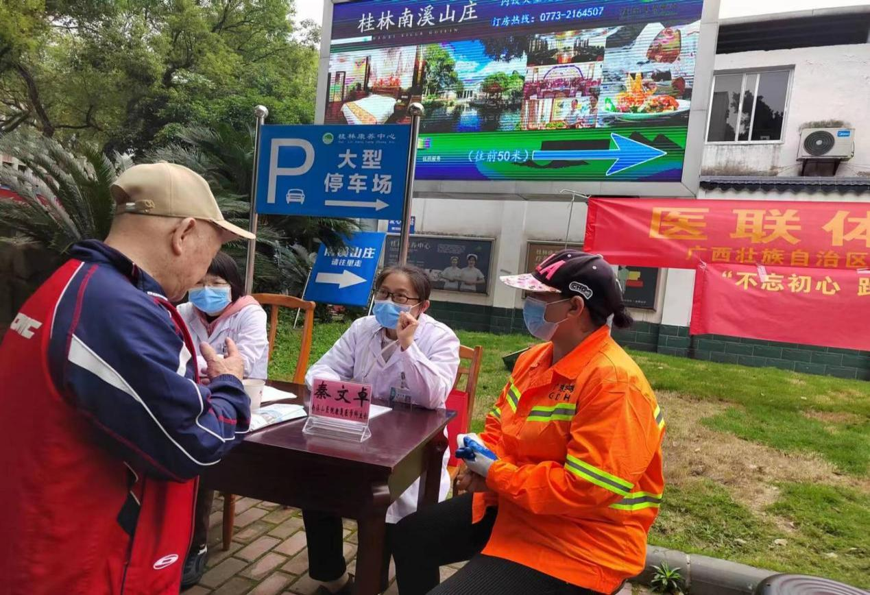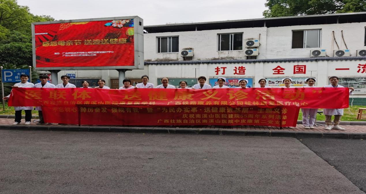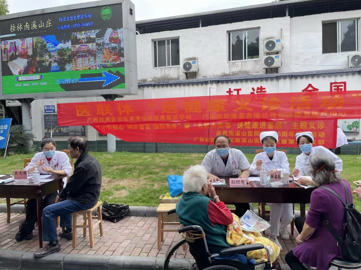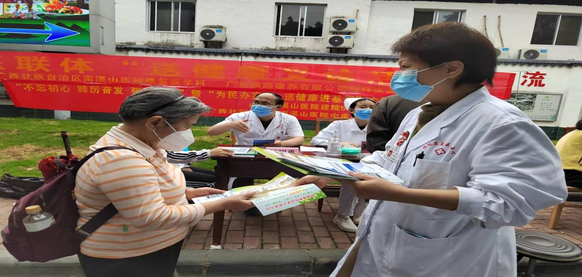 5月14日,广西壮族自治区南溪山医院中皮康第二党支部与广西铁路康养有限公司桂林康复医疗中心联合在南溪山公园门口开展医联体“为民办实事·送健康”义诊活动,把优质医疗送到群众身边。
