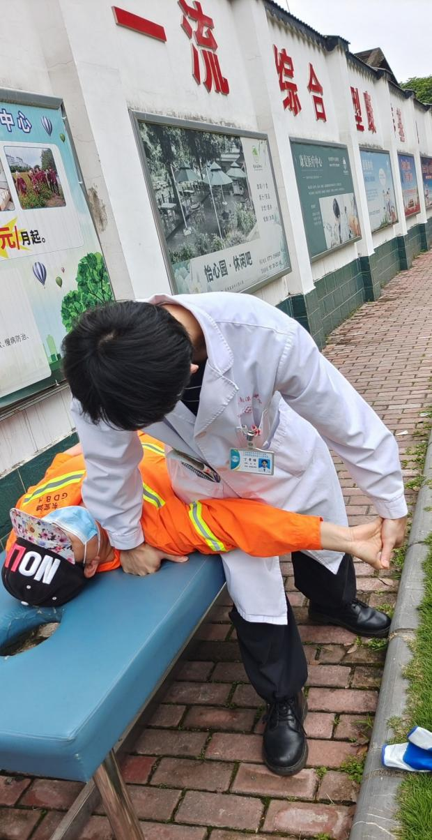 一位腰椎侧弯的阿姨在现场接受了家庭自我康复训练的指导后,显得非常开心:“每次走路五分钟就开始腰痛,打针吃药都只能缓解几天,现在靠自己锻炼就能缓解疼痛,还能慢慢改善,真是太好了!”一位清洁工阿姨由于长期低头工作、单侧手臂用力较多,加上颈椎病症状,引起了手指麻木等症状,南溪山医院康复医学科主任秦文卓在了解病史后,为其进行了针对性地体格检查,给予了及时的诊断治疗和用药指导,治疗师丁章博为其进行了颈椎病的手法治疗及康复训练指导,帮助阿姨预防颈椎病的加重。秦文卓表示,科学的康复训练和日常的保健操能有效改善身体疼痛等老毛病,恢复肌能的同时还能增强免疫力。健康的生活习惯不仅能预防和减轻疾病,还能养成积极向上的心态,提高生活质量。