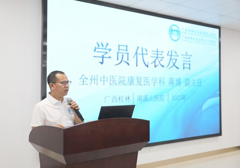 自治区卫健委老龄健康处副处长吴弘晖、二级主任科员余昌榕到场参加结业典礼,吴弘晖副处长作了《完善安宁疗护服务体系,助力健康老龄化》的专题讲座,充分肯定了南溪山医院老年医学人才培训基地的培训工作,并对进一步做好老年医学人才培训及老年医学学科建设提出了建议,鼓励学员们运用所学知识做好老龄健康工作,推动广西老年健康服务事业取得更大发展。