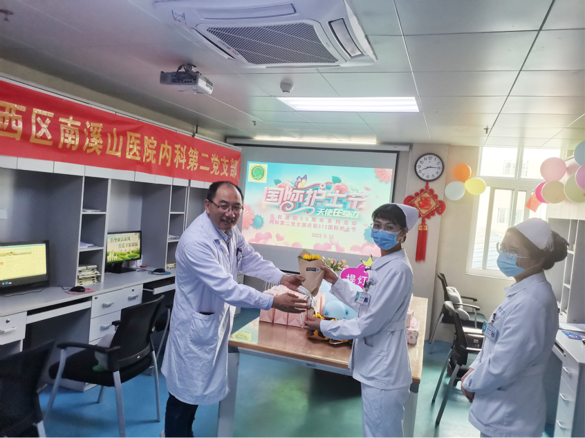 五月生机盎然,繁花似锦,第112个国际护士节在这个美好的季节如期而至,今年国际护士节的主题是“我们的护士,我们的未来”。5月12日,广西壮族自治区南溪山医院内科第二党支部(神经内科)举办“5.12”国际护士节庆祝活动,向白衣天使们送上节日礼物和祝福慰问。