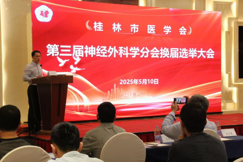 5月10日下午,桂林市医学会神经外科学分会第三届委员换届选举大会隆重举行。本次会议由桂林市医学会主办,来自全市各级医疗机构的神经外科领域专家、学者及新一届委员候选人齐聚一堂,共同见证分会新一届领导班子的诞生,并围绕学科前沿进展展开深入学术交流。