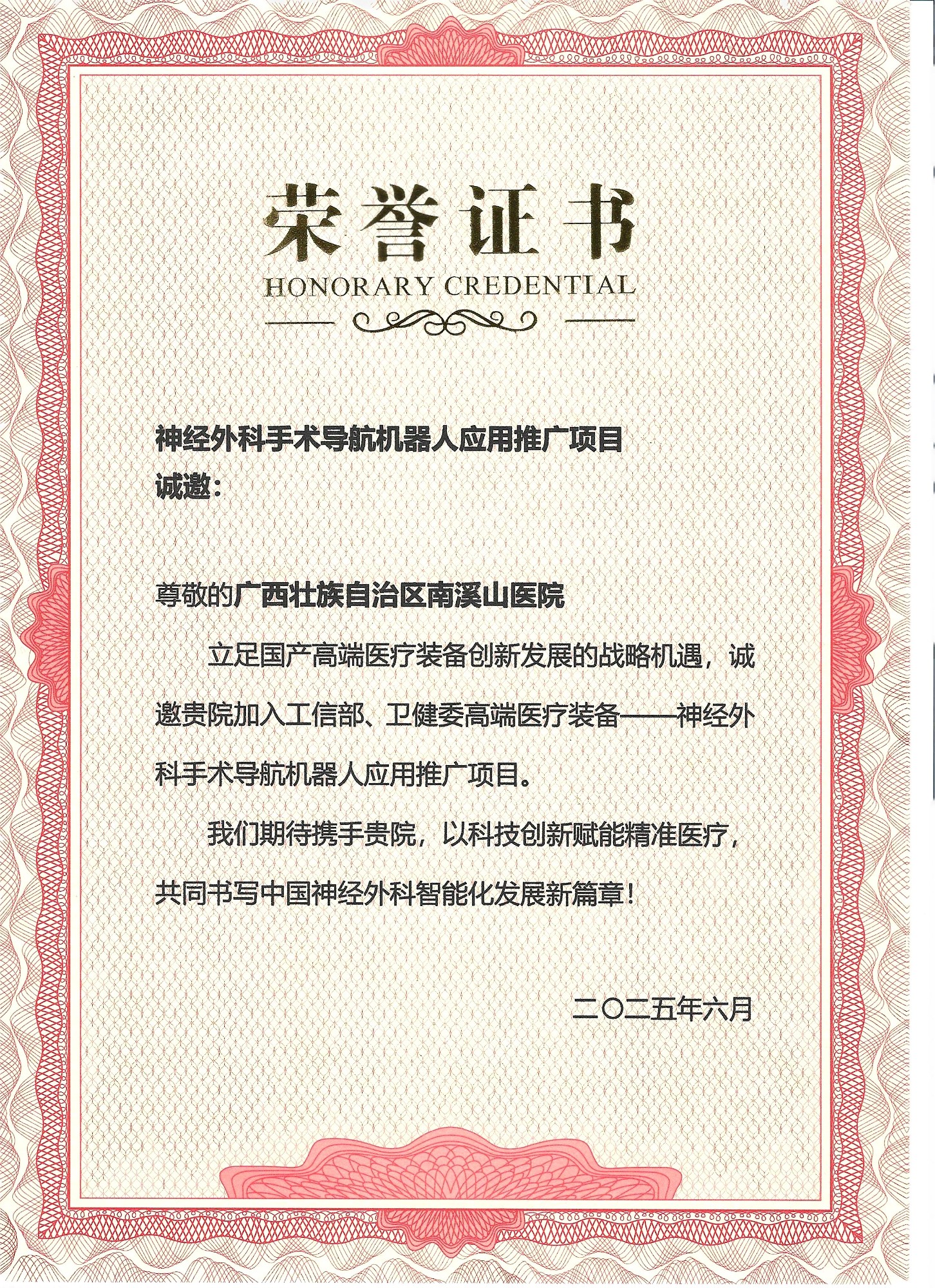 广西壮族自治区南溪山医院获评国家级神经外科手术导航机器人应用推广项目单位