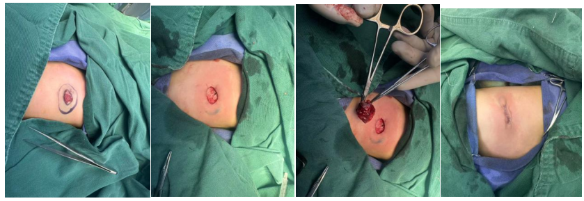 本例患儿血管瘤位于左侧腰部,直径约2cm,存在快速增长趋势。团队在高清显微放大系统辅助下,完整剥离瘤体并保留周围正常腺体及神经,切口长度控制在1.8cm。术后7天拆线时,切口已呈细线状,预计经6-12个月疤痕干预后,几乎不可见。