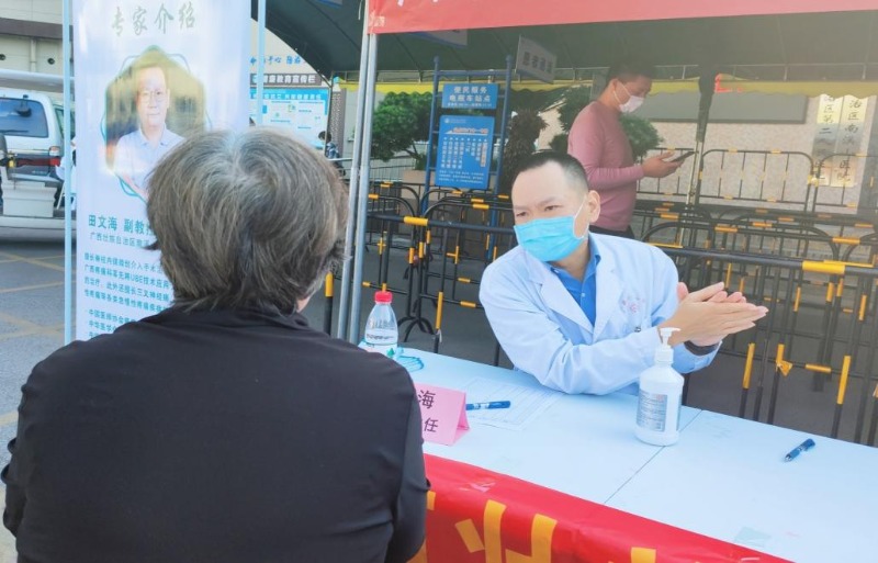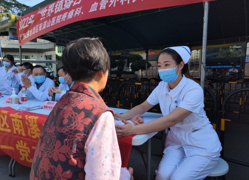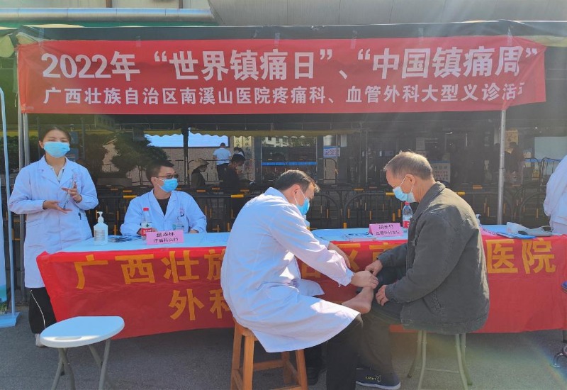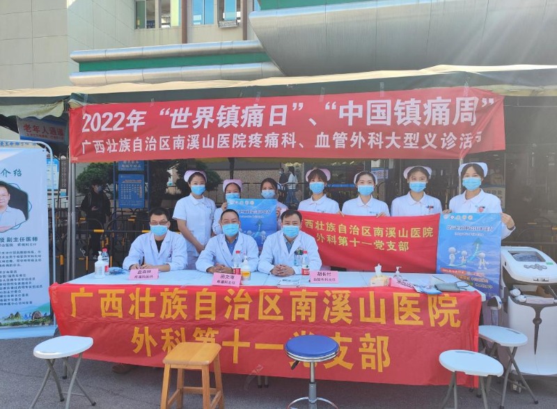10月17日-23日为“中国镇痛周”,10月17日为“世界镇痛日”,10月21日,上午,广西壮族自治区南溪山医院外科第十一党支部的疼痛科、血管外科联合,在医院门诊举行以“提高疼痛综合疗护能力”为主题的“世界镇痛日”暨“中国镇痛周”健康义诊系列活动。