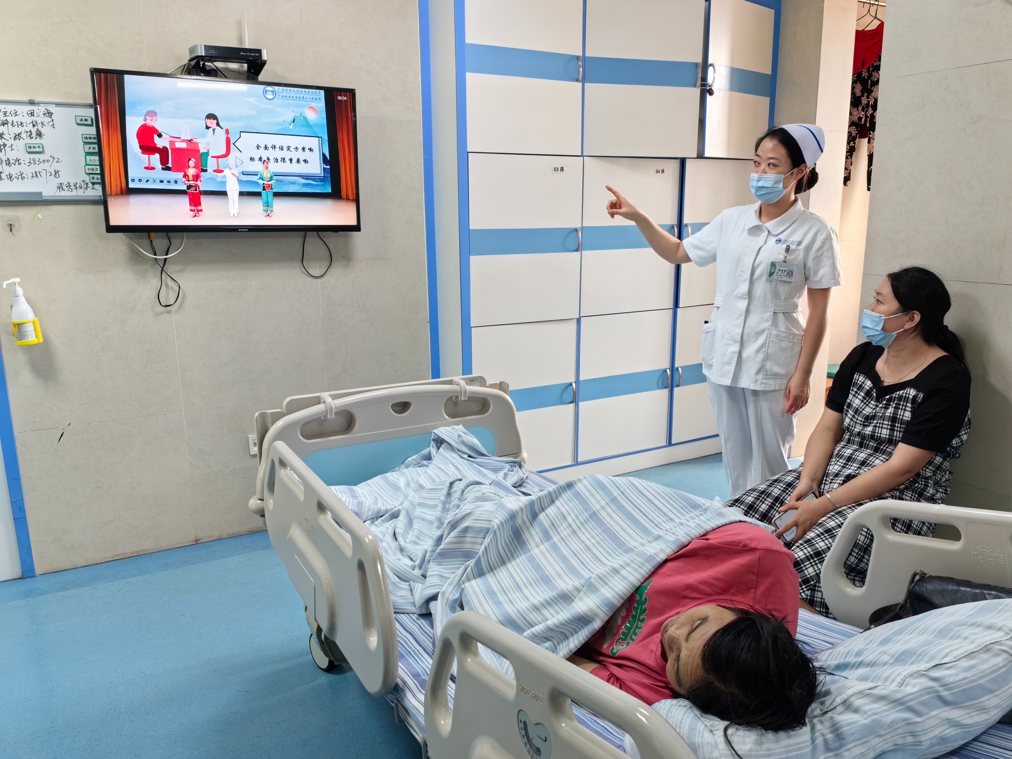 “这个视频拍得很形象,也讲得很详细。”“我们这些不太懂医学知识的看一遍就会了”“这个视频很适合老年人观看。”……在广西壮族自治区南溪山医院疼痛科、血管外科病房内,经常能听到患者和家属们的赞扬,医护人员自编自演的宣教视频贯穿了患者住院的全过程,并在每个病房循环播放。患者和家属们跟着视频边学习边记录,这份温暖不仅感动了患者和家属,也成了该科治疗、护理、康复为一体的美丽的风景线。