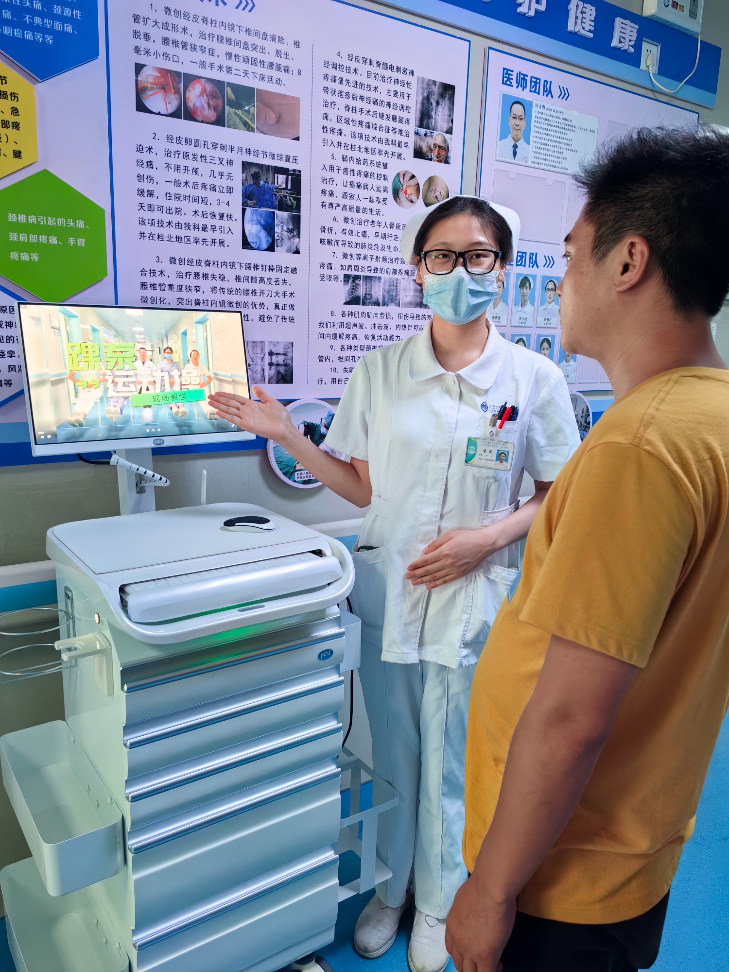 为满足⼈民群众⽇益增长的多元化护理服务需求,进⼀步改善护理服务行动,南溪山医院血管外科、疼痛科积极响应该院护理部正在开展的“提高护士宣教能力”活动,提高科室护理人员健康宣教能力,让患者更直观地了解相关疾病健康知识,持续提升患者就医体验。