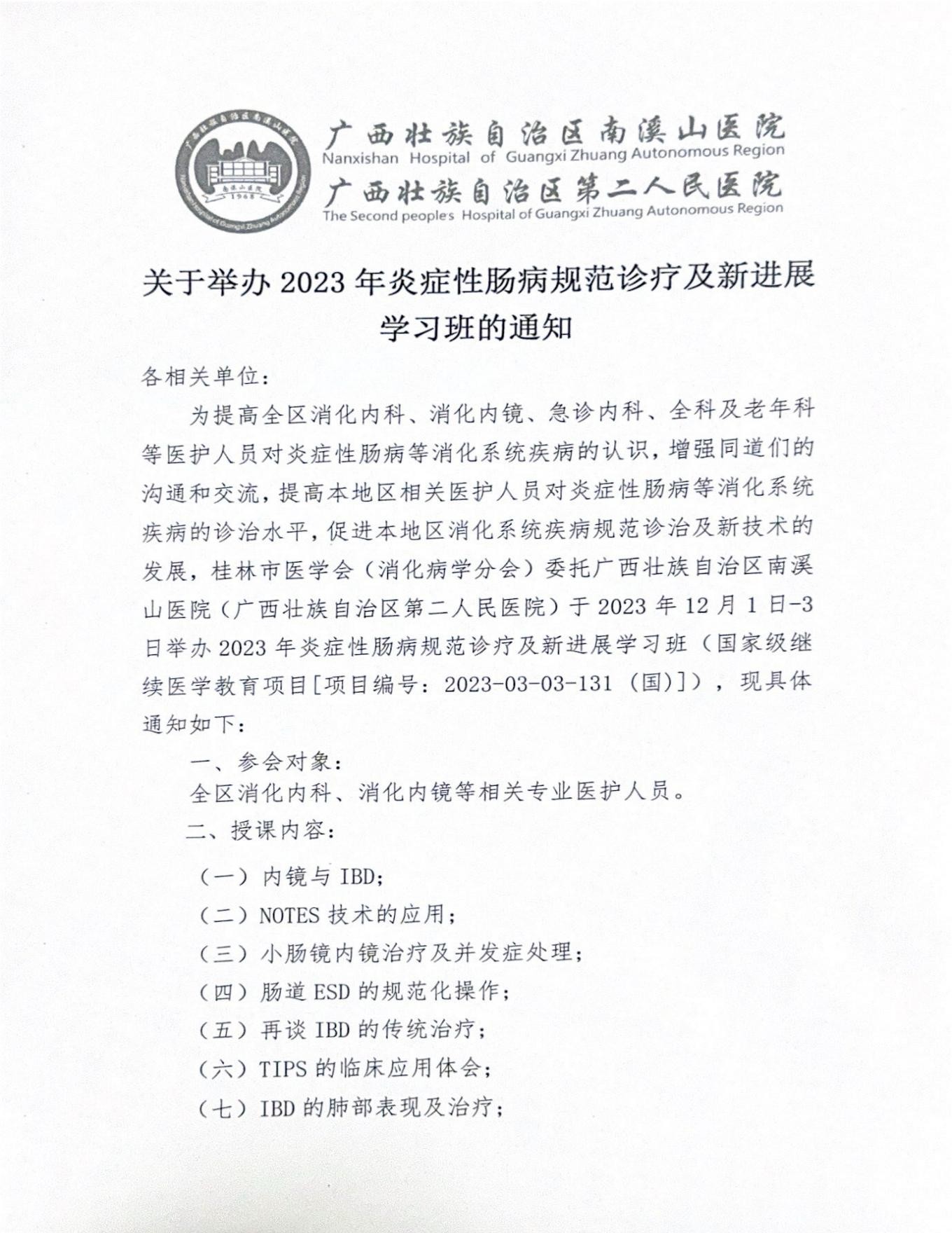 关于举办2023年炎症性肠病规范诊疗及新进展学习班的通知