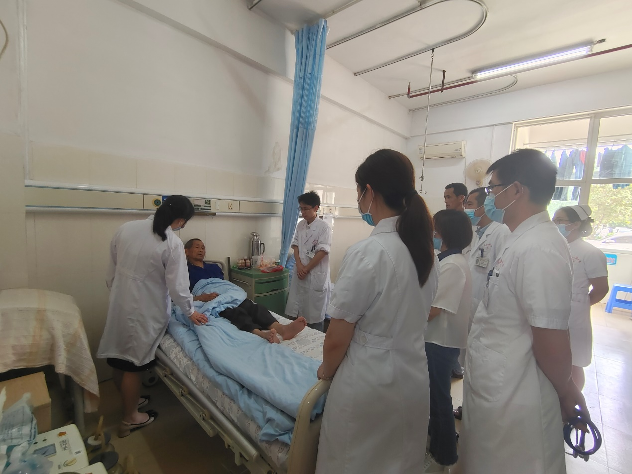 党支部书记兼血液内科副主任王薇在永福县人民医院进行血液相关病例的现场查房和用药指导,并就血液系统疾病与当地医生进行业务交流。查房结束后,王薇就多发性骨髓瘤这一血液系统疾病进行了专题授课,向当地医护人员讲解了什么是多发性骨髓瘤、什么时候需要考虑诊断多发性骨髓瘤,从几个临床病例向他们讲述了该疾病的发病特点、治疗及预后,当地医护人员学习热情高涨,纷纷表示受益匪浅。