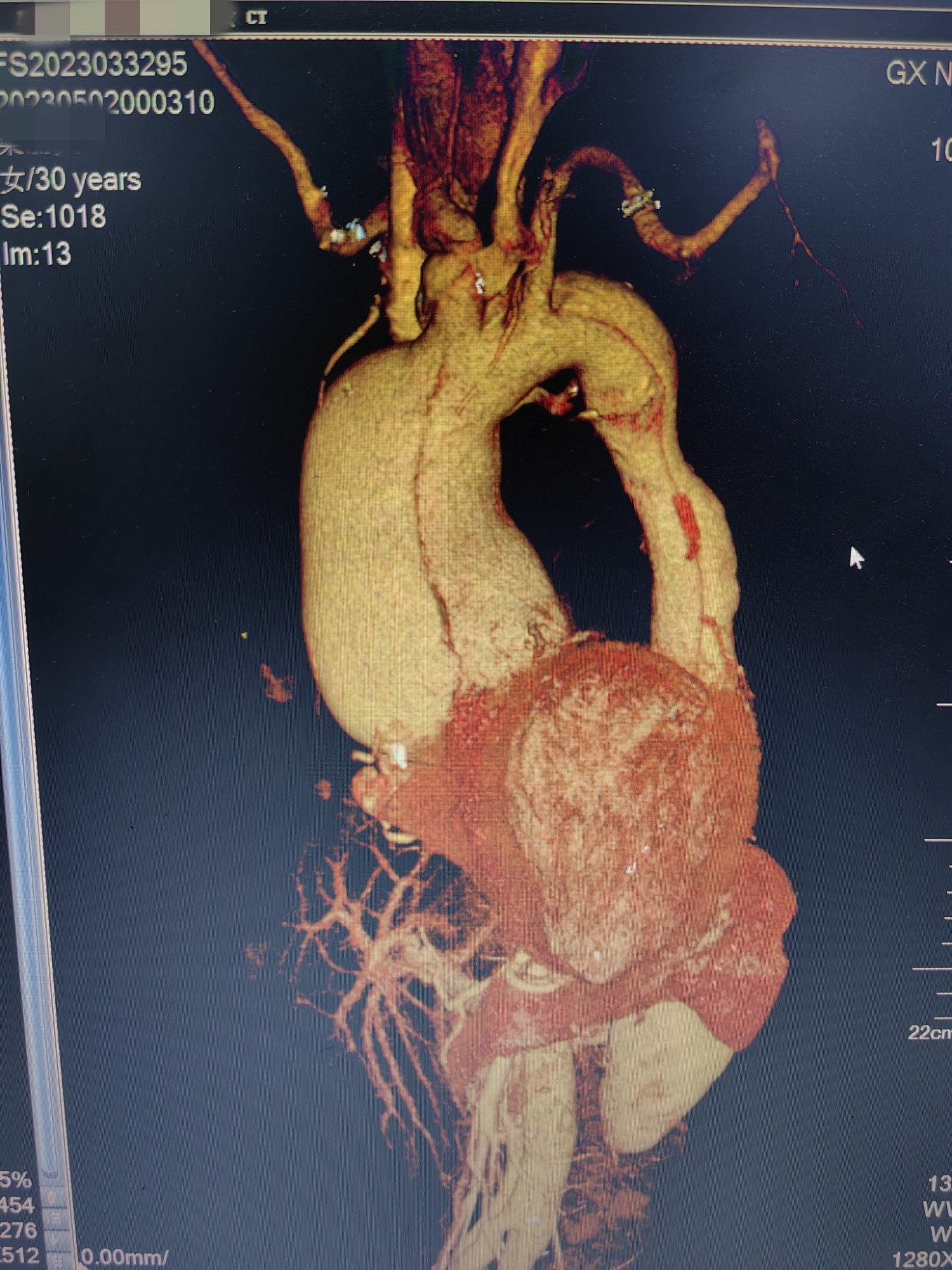 2、手脚细长、血压脉压差很大、术前CTA三维、根部严重扩张。(1)