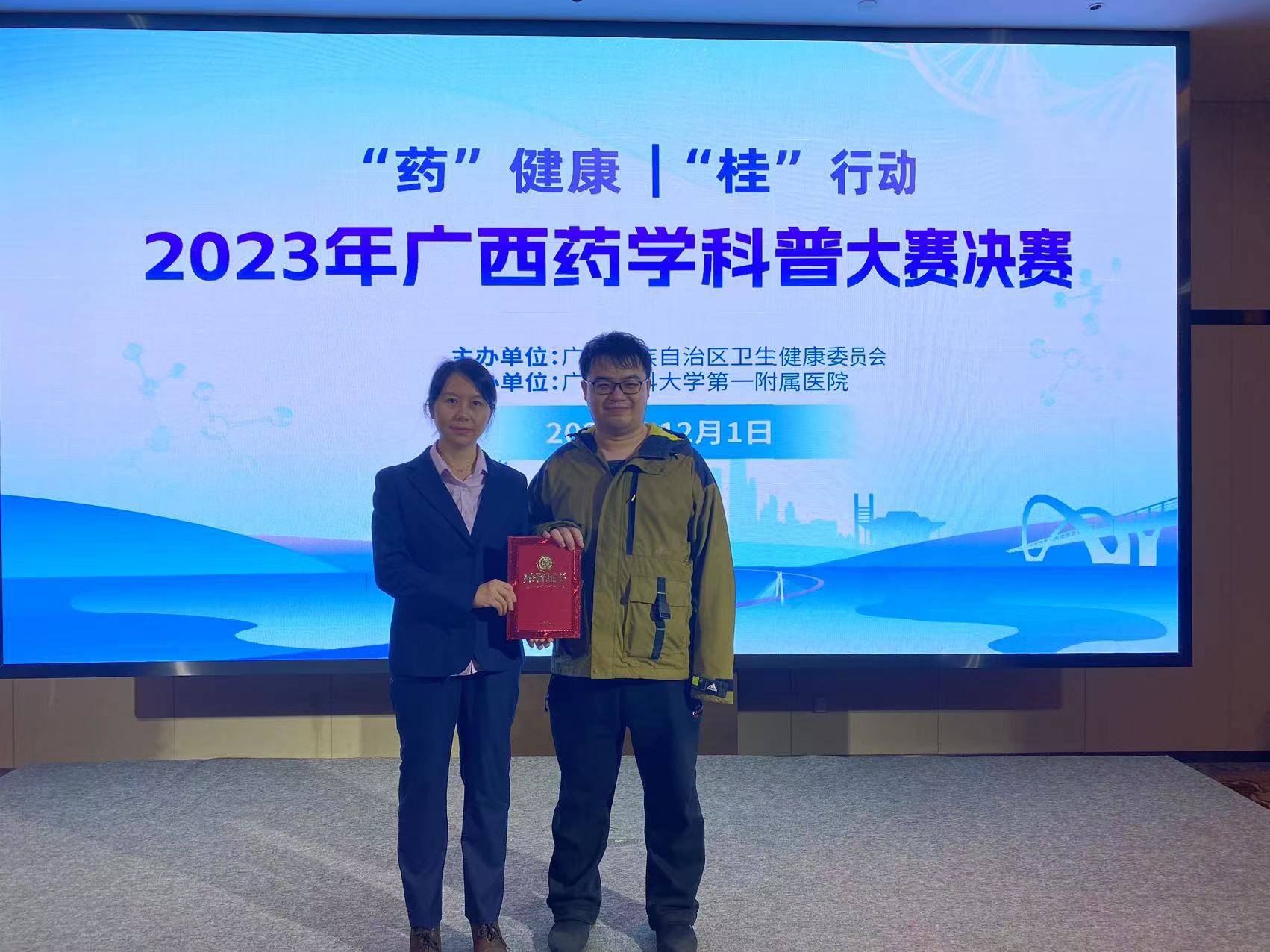 近日,由广西壮族自治区卫生健康委员会主办的2023年广西药学科普大赛决赛在广西南宁举行。广西壮族自治区南溪山医院药学部参赛作品《抗过敏药物知多少》从初赛中脱颖而出进入决赛,并在决赛中表现优异,获得图文类奖项三等奖。