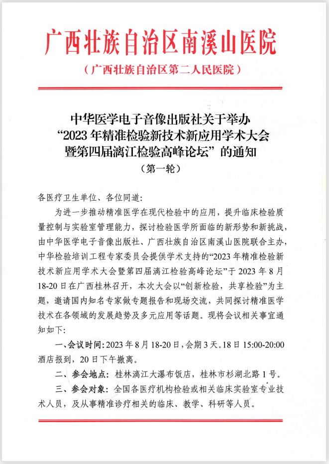 中华医学电子音像出版社关于举办“2023年精准检验新技术新应用学术大会暨第四届漓江检验高峰论坛”的通知-通知公告-院务公开-广西壮族自治区南溪山医院【官方网站】