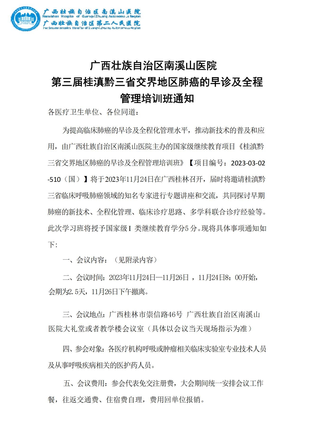 广西壮族自治区南溪山医院 第三届桂滇黔三省交界地区肺癌的早诊及全程 管理培训班通知-通知公告-院务公开-广西壮族自治区南溪山医院【官方网站】