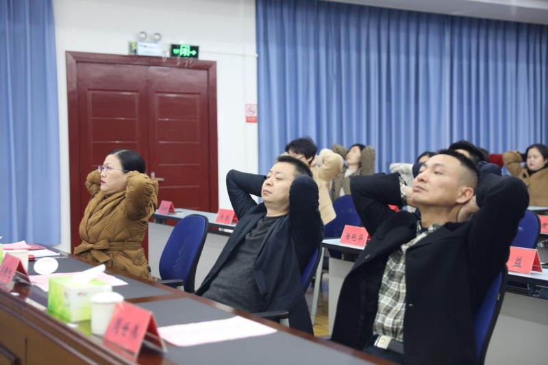 参会人员在张海娇副主任、博士带领下进行肢体锻炼
