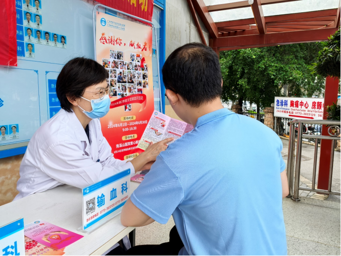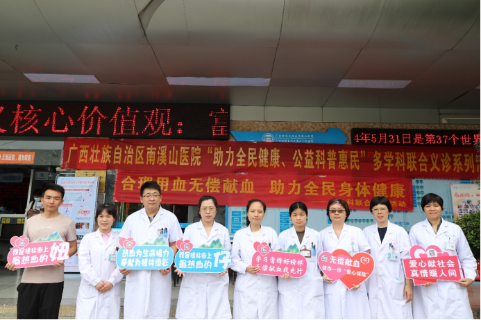 5月31日,自治区南溪山医院党委及团委组织运动医学科与关节外科、医学美容科、辅助生殖科、产科、皮肤科、感染性疾病科、血液内科、输血科的专家团队,在医院门诊开展多学科联合义诊活动,旨在倡导合理用血、成分用血治疗,宣传无偿献血相关知识。
