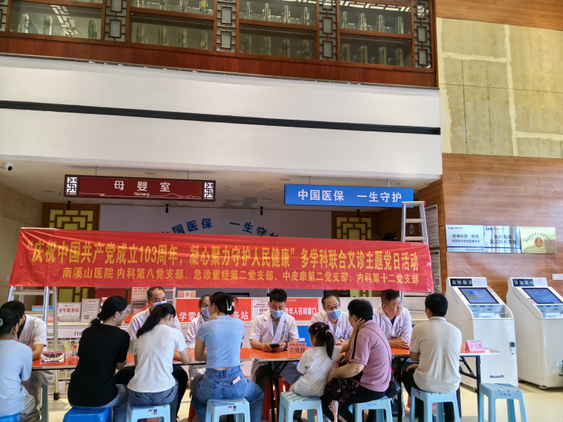 此次活动的主题是“庆祝中国共产党成立103周年,同心共筑健康梦”,通过实际行动,为党的华诞献礼,同时向广大人民群众传递健康与关爱。南溪山医院精心策划,细心准备,集结了呼吸科、肿瘤科、康复科、急诊科等多领域的权威专家和年轻有为的党员医护,共同组成了这支多学科联合义诊队伍。