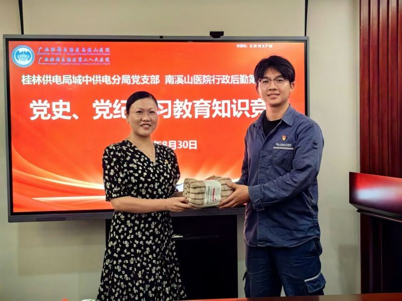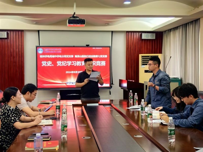 8月30日下午,为深入贯彻落实全面从严治党要求,巩固党纪学习教育成效,深化廉洁自律意识,广西壮族自治区南溪山医院行政后勤第七党支部与桂林市供电局城中供电分局党支部联合开展主题党日活动,通过联学共建加强交流,促进事业发展。