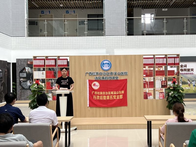 6月24日,广西壮族自治区南溪山医院行政后勤第五党支部开展“清风扬正气 廉韵润人心”主题党日活动,号召党员同志弘扬廉洁文化,坚守廉洁底线。