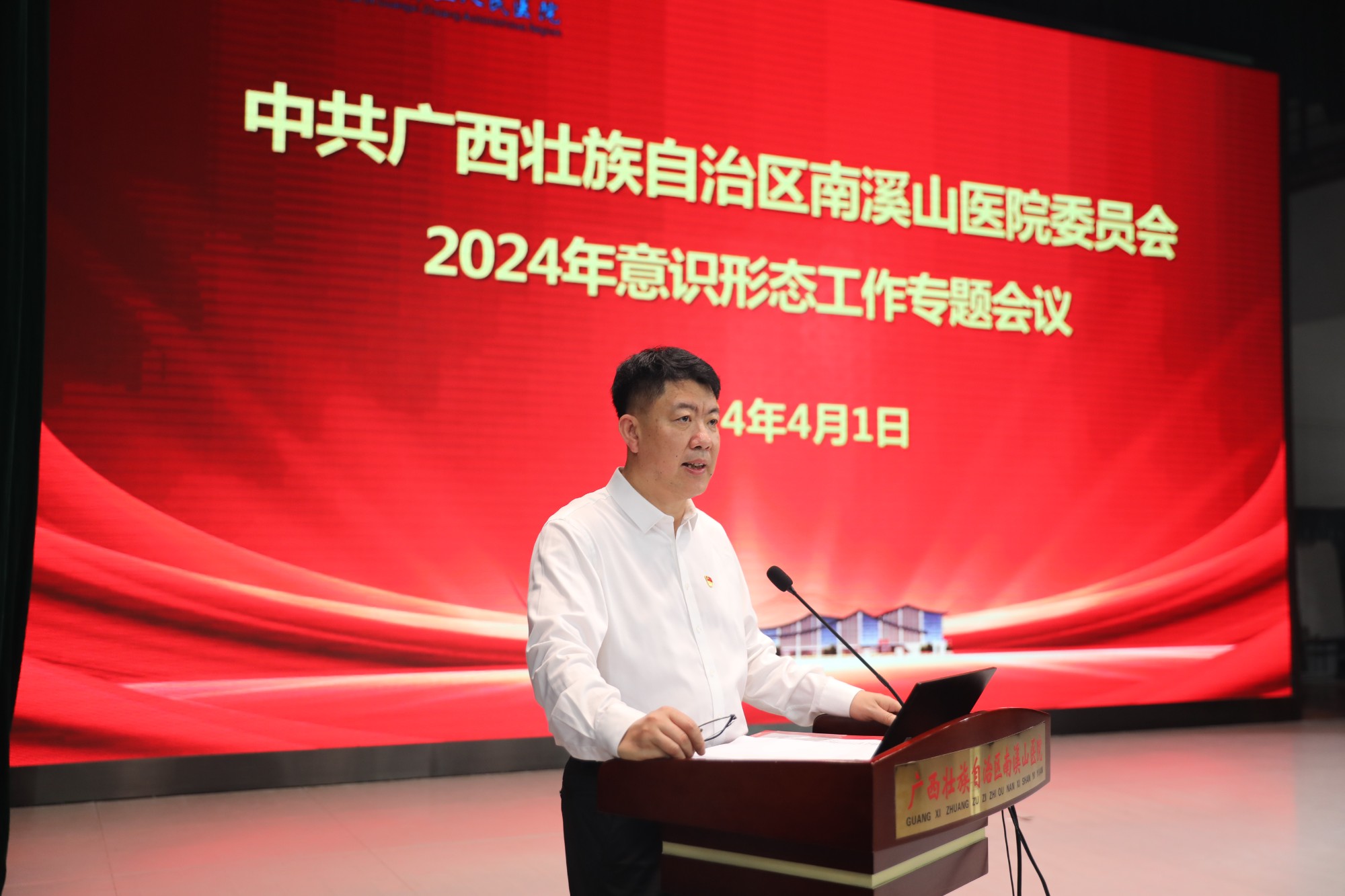 4月1日,自治区南溪山医院召开2024年意识形态工作专题会议,全面分析研判2023年意识形态工作,部署2024年各项工作。医院党委书记柳宏林讲话强调,要以党的政治建设为统领,牢牢把握意识形态领域话语权,为医院的高质量发展凝聚强大精神力量。医院纪委书记喻泽军主持会议,全体党政领导班子成员,各党支部书记、支委委员,全体中层干部参加会议。