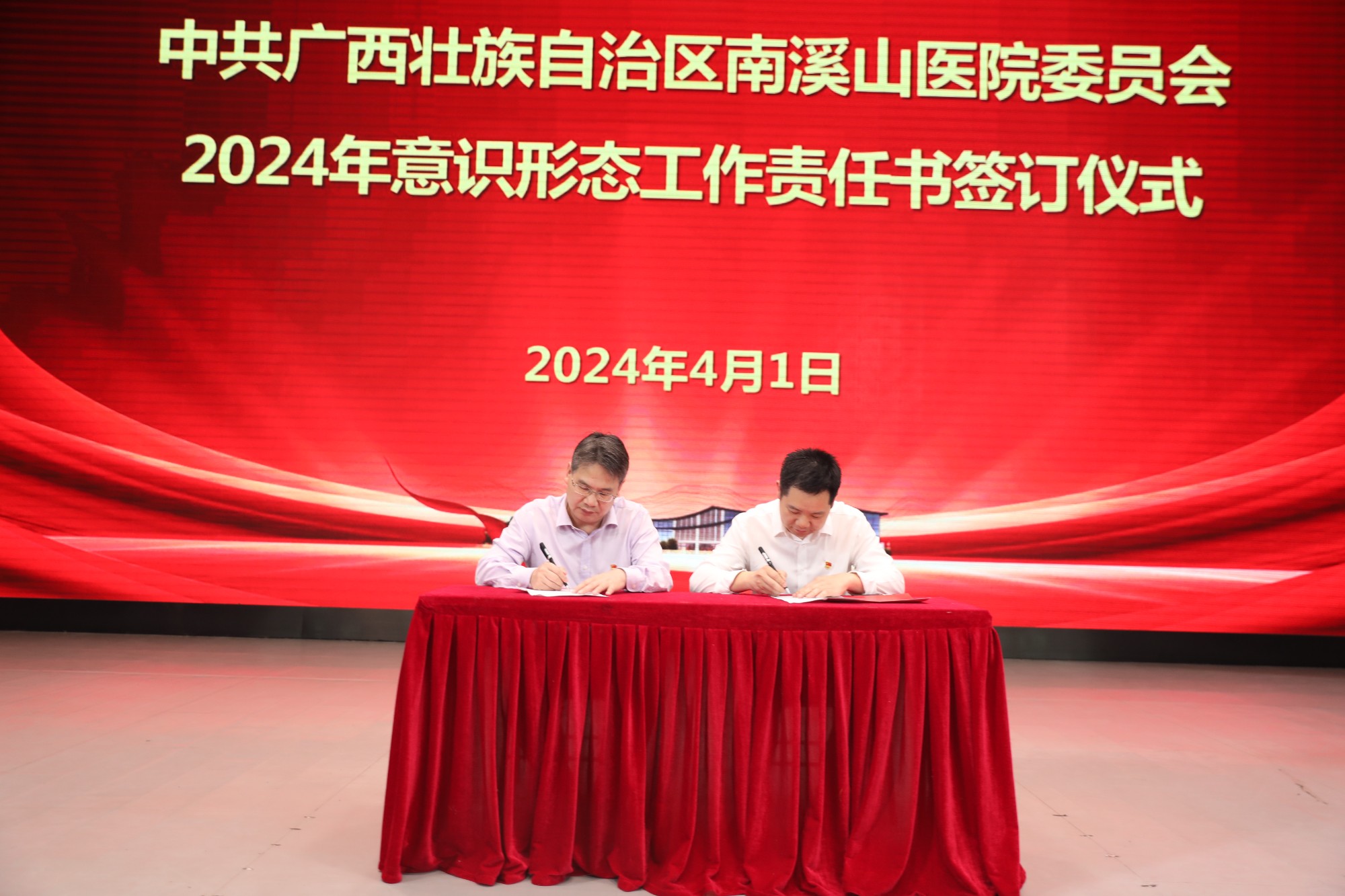 医院党委书记柳宏林与医技第九党支部书记、放射治疗科主任盘玉飞签订2024年意识形态工作责任书
