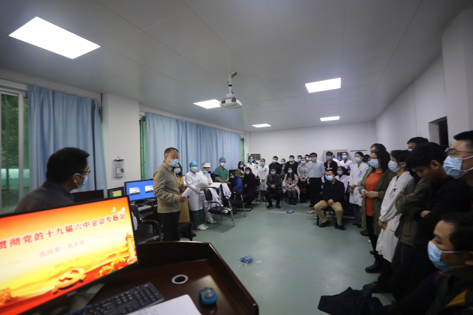 11月15日,自治区南溪山医院党委召开学习贯彻党的十九届六中全会动员部署会;会后,医院领导深入联系党支部作专题党课辅导,组织广大党员认真学习全会精神,助推医院高质量发展。