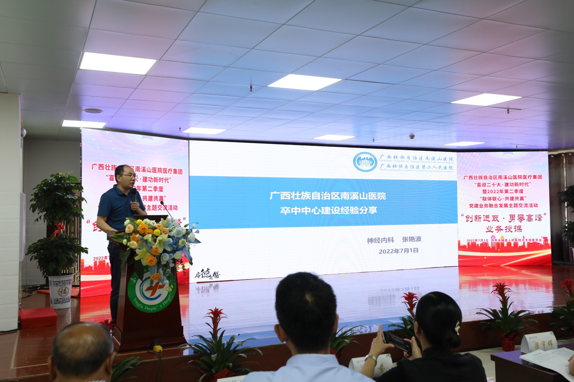 理论方面,政务融合强化发展新内涵。6月30日下午,南溪山医院党委副书记、工会主席张超群就“提高公立医院政治思想工作实效性的实践与探索”展开授课,与各医联体成员单位探讨党建文化的内涵和意义,剖析思政教育连续性和终身学习的必要性。7月1日上午,南溪山医院神经内科主任张艳波博士讲授《卒中中心经验建设分享》,向与会人员介绍卒中中心成立和发展经验,探索多学科会诊模式下学科融合与专科发展新方向。
