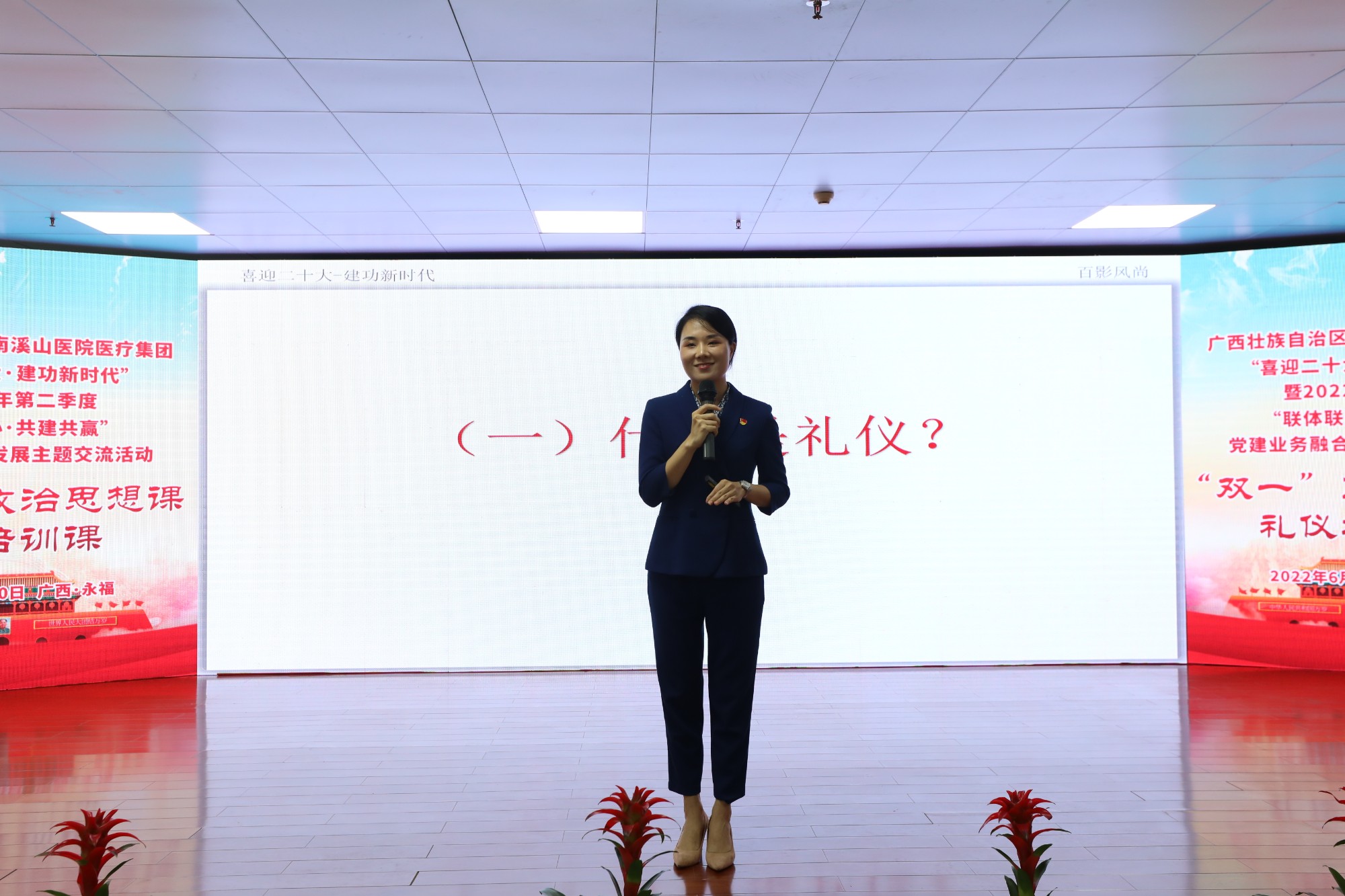软实力方面,文化强基开创服务新篇章。此次活动在坚持第一季度核心文化课和党建业务课展示基础上,首次开设商务礼仪培训,以实操演练创新服务理念,提升服务质量。文体双联,创新交流新模式。6月30日晚,交流活动走出会议室,在永福县体育馆举行“庆七一 ‘党建联盟杯’气排球比赛”。医护人员化身体育健儿,将“全民健康”理念融入医者生活。
