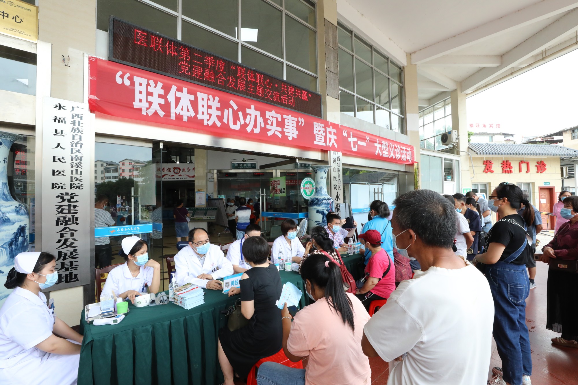 7月1日上午,南溪山医院党委书记戴前富带领与会人员重温入党誓词。活动开始的当天上午,参加活动的南溪山医院医学专家在永福县人民医院举行健康义诊活动,以实际行动服务基层百姓,庆祝“七一”建党节。