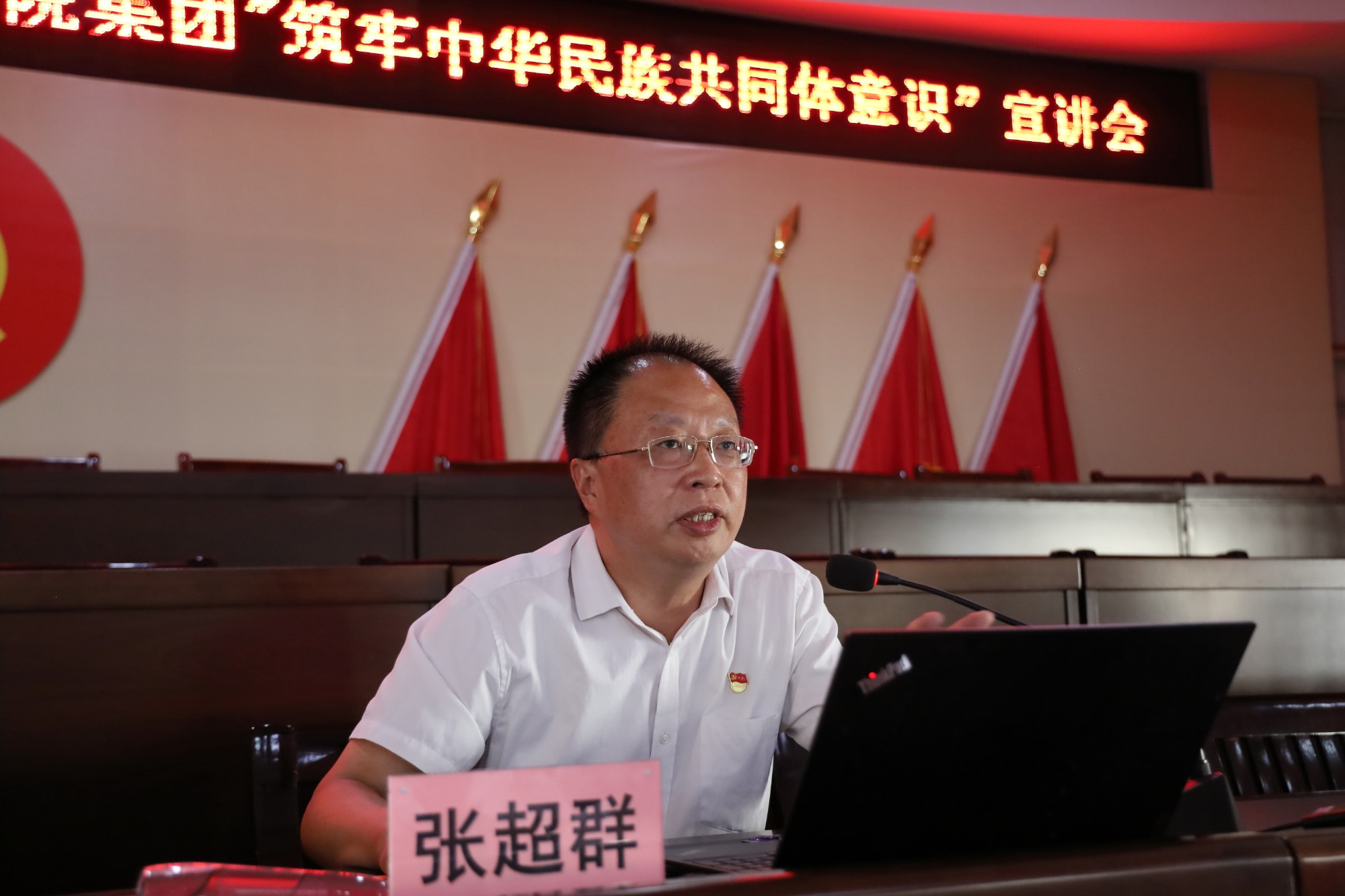 张超群从民族团结工作的基本知识入手,以“三个离不开”、“四个与共”、“五个共同”、“六个相互”为切入点,重点分析了铸牢中华民族共同体意识的深刻内涵和关键问题。并以讲故事的形式,向在场人员讲解历史上广西维护民族团结的典型人物和先进事迹,进一步激发了大家的学习兴趣。