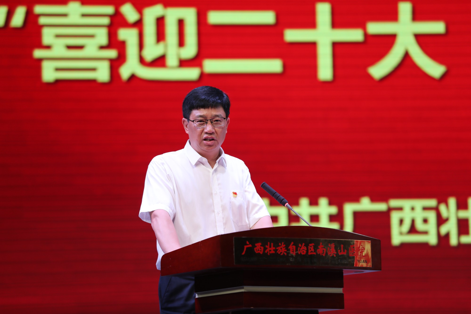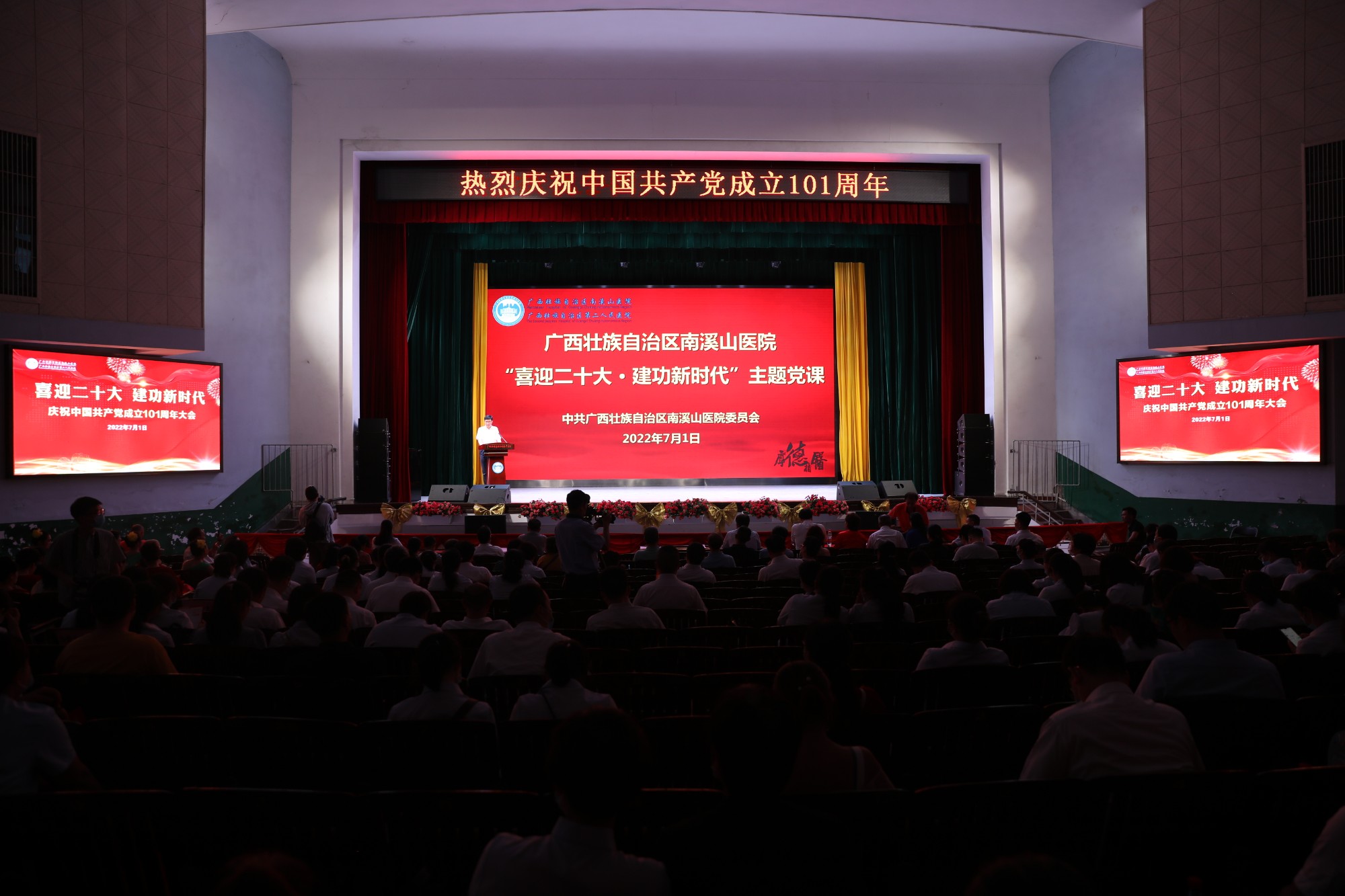 7月1日,广西壮族自治区南溪山医院党委在大礼堂召开庆祝中国共产党成立101周年大会,医院党委书记戴前富给全院党员干部上“喜迎二十大·建功新时代”主题党课。要求全院上下必须以高度的责任感、使命感,投身到医院高质量发展的建设中,争做新时代的“四种人”,勇当人民信赖的精诚大医。