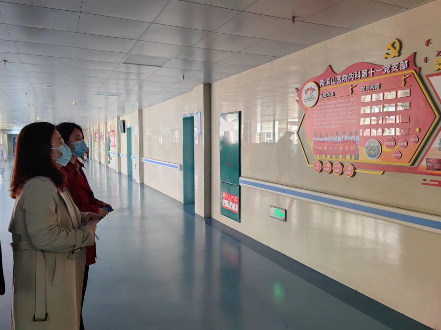 随后,考核组成员通过检查台账材料、实地查看等方式,全面了解南溪山医院党建工作的开展情况,并对医院党建工作创新发展提出合理化建议。