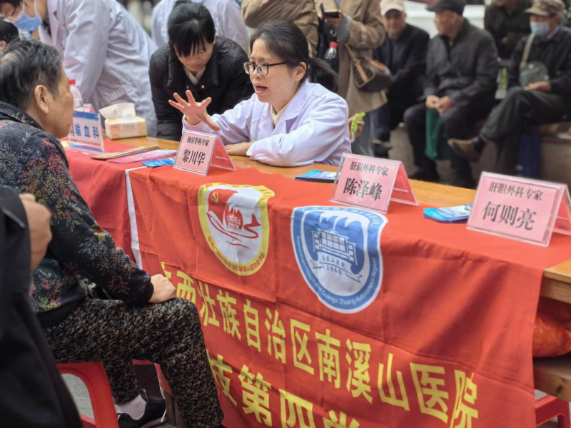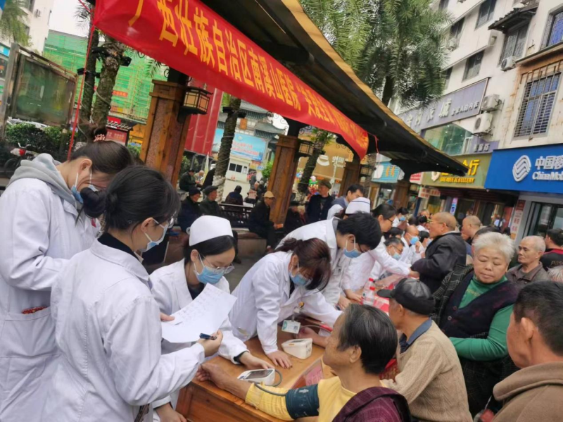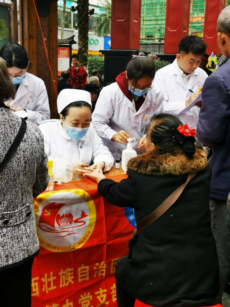 11月25日,广西壮族自治区南溪山医院外科第一党支部,医技第四、第七、第九党支部在兴安县城古戏台广场联合开展“关爱生命,健康同行”义诊活动,党员医疗专家们为当地群众提供了一系列的免费医疗服务。