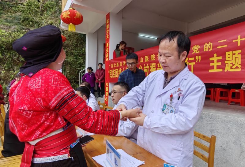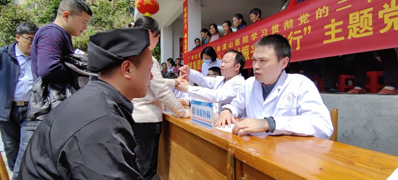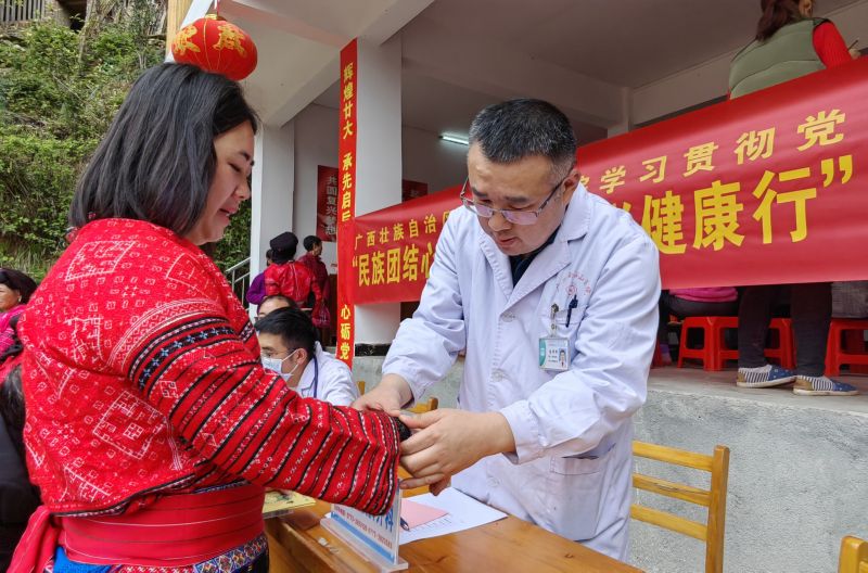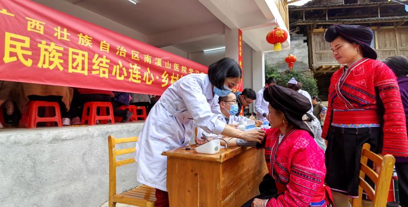 南溪山医院医护人员为龙胜少数民族群众送医送药。张超群 摄