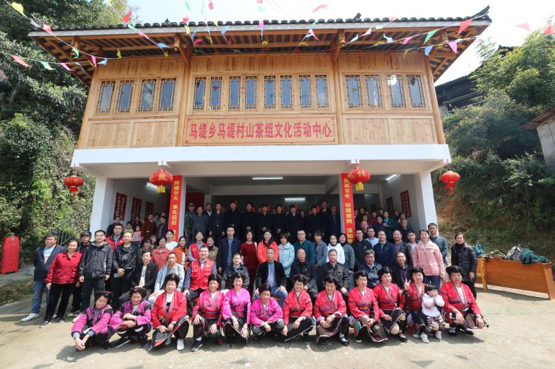 龙胜县、南溪山医院、马堤乡的有关领导跟山茶组各族群众在文化活动中心前合影留念。杨实可 摄