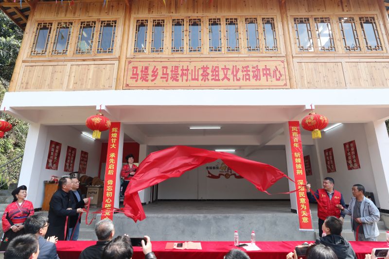 龙胜县、南溪山医院和马堤乡的有关领导共同为山茶组文化活动中心落成启用揭牌。杨实可 摄