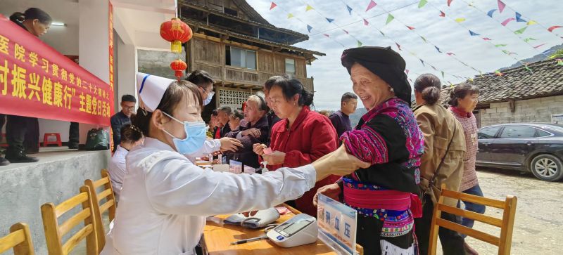 南溪山医院白衣天使为山茶组村民测量血压。张超群 摄
