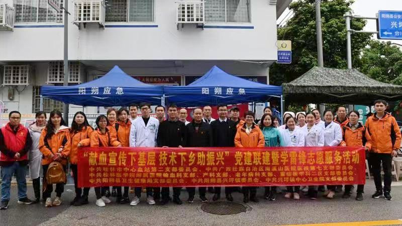 此次活动由桂林市中心血站牵头,南溪山医院医技第七党支部、内科第七党支部、桂林市中心血站第二党支部、桂林医学院附属医院多个党支部,以及阳朔县卫健局党支部、兴坪镇中心卫生院党支部共同参与。
