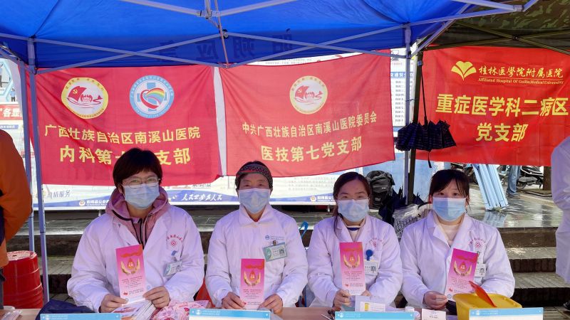 为全面贯彻习近平新时代中国特色社会主义思想,弘扬全国两会精神,充分发挥党建引领作用,3月29日,广西壮族自治区南溪山医院的党员医务工作者走进阳朔兴坪镇,开展“献血宣传下基层 技术下乡助振兴”党建联建暨学雷锋志愿服务活动。