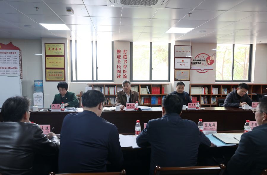 驻委纪检监察组副组长曹金国、自治区卫生健康委直属机关党委专职副书记陈彦、自治区卫生健康委人事处副处长韦伟等领导一同到会指导。南溪山医院全体党、政领导班子成员及相关部门负责人参加会议。