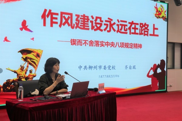 柳州市委党校齐自琨教授以《作风建设永远在路上》为题,系统解读了深入贯彻中央八项规定精神学习教育的重要性与必要性,深入把握作风建设的科学体系、精髓要义、实践要求,让全体学员对作风建设和中央八项规定精神有了更加系统深入的认识和理解。