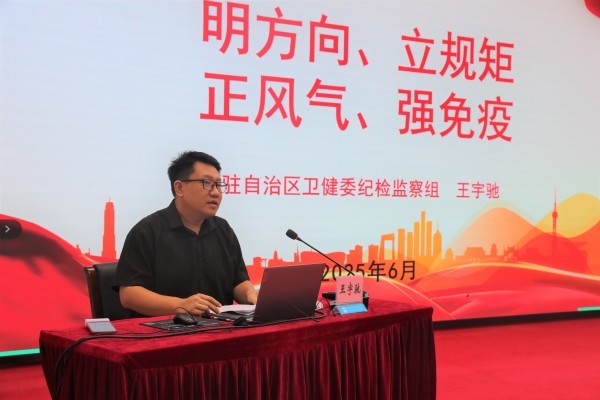 驻自治区卫生健康委纪检监察组监察室主任王宇驰聚焦《医院廉政风险分析与防范对策》,结合卫健系统腐败典型案例,剖析剖析了腐败案件的特征、医院廉政风险点以及预防举措,告诫广大党员干部深化以案为鉴,深刻汲取教训,真正把“看在眼里的教训”转化为“刻在心底的敬畏”。