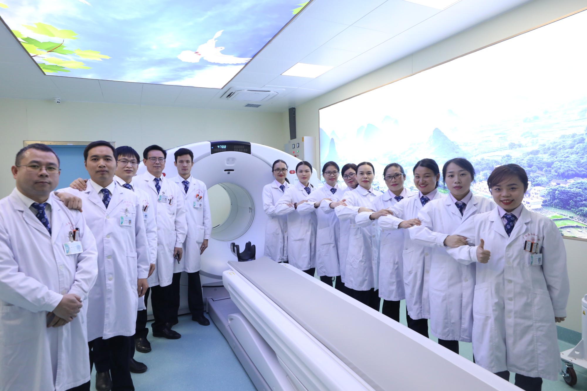 我院核医学科是广西桂北地区成立最早,也是最全面,最符合放射卫生标准的核医学科,在临床、科研、教学等方面,在桂北地区始终起着重要的作用。随着医学技术的快速发展,现代医学也从单一的医学模式向多元化的医学模式拓展,精准医疗也成为当今医疗的主流方向。我院紧扣时代脉搏,把握大势,引进了当今最先进的全数字化的PET/CT。PET/CT,自2001年用于临床后,现在欧美日本等发达国家,已成为肿瘤病人的常规检查。自2003年国内引进第一台PET/CT之后,其发展迅猛,在临床医疗中发挥着越来越重要的作用;PET/CT是从功能和代谢水平上评估病变,尤其是肿瘤诊断与鉴别诊断、临床分期、靶区勾画、疗效评估、以及个性化治疗方案的制订等方面起着不可替代的作用;同时对于高危人群肿瘤筛查等方面也起着决定性作用,堪称追踪肿瘤的“生命雷达”。除此之外,PET/CT还能对心、脑系统等疾病提供精准诊断和科学研究。PET/CT被誉为“现代医学高科技之冠”,我院引进通用电气公司生产的PET/CT,是全球最先进的第三代全息数字化仪器,具有超高扫描速度,超高清分辨率,超高的诊断准确率。这台仪器的到来,对我院来说‘如虎添翼’,不仅会使医院医疗服务装备再上档次,更意味着我院医疗服务水平就此走向分子影像新时代,实现对肿瘤及其它疾病的早期精准诊断和精准治疗,是医院发展史上的重要里程碑。为深化医院改革,加强各学科建设,提升医院临床、教学、科研水平和服务能力做出贡献,也为建设健康中国、健康桂林作出应有的贡献。