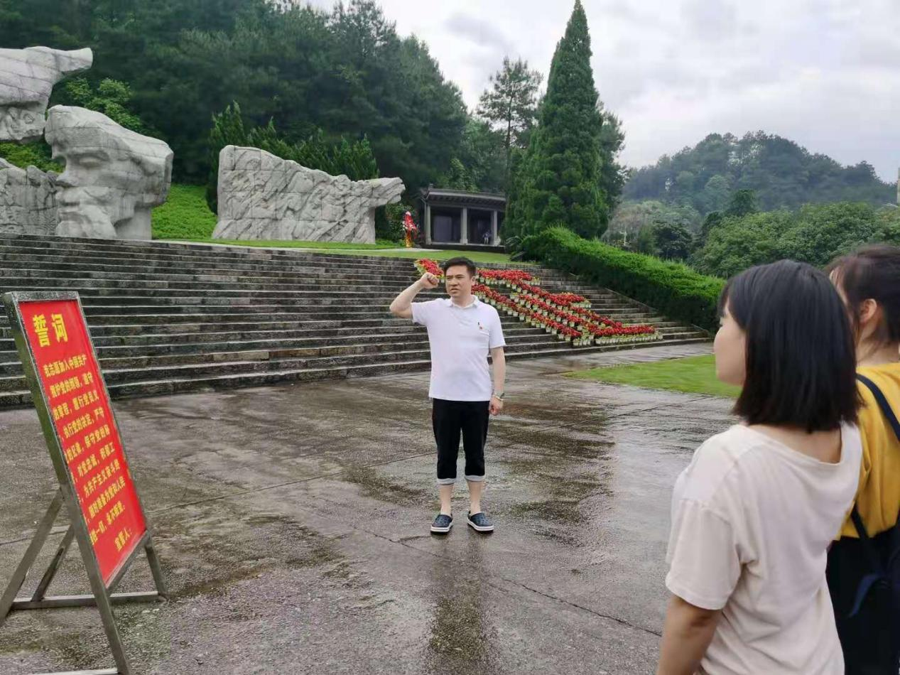 在纪念碑园,参加活动人员向革命先烈默哀致敬,缅怀他们舍生忘死拼胜利、不怕牺牲为人民的伟大英魂。在支部书记洪勇带领下,全体党员重温了入党誓词。