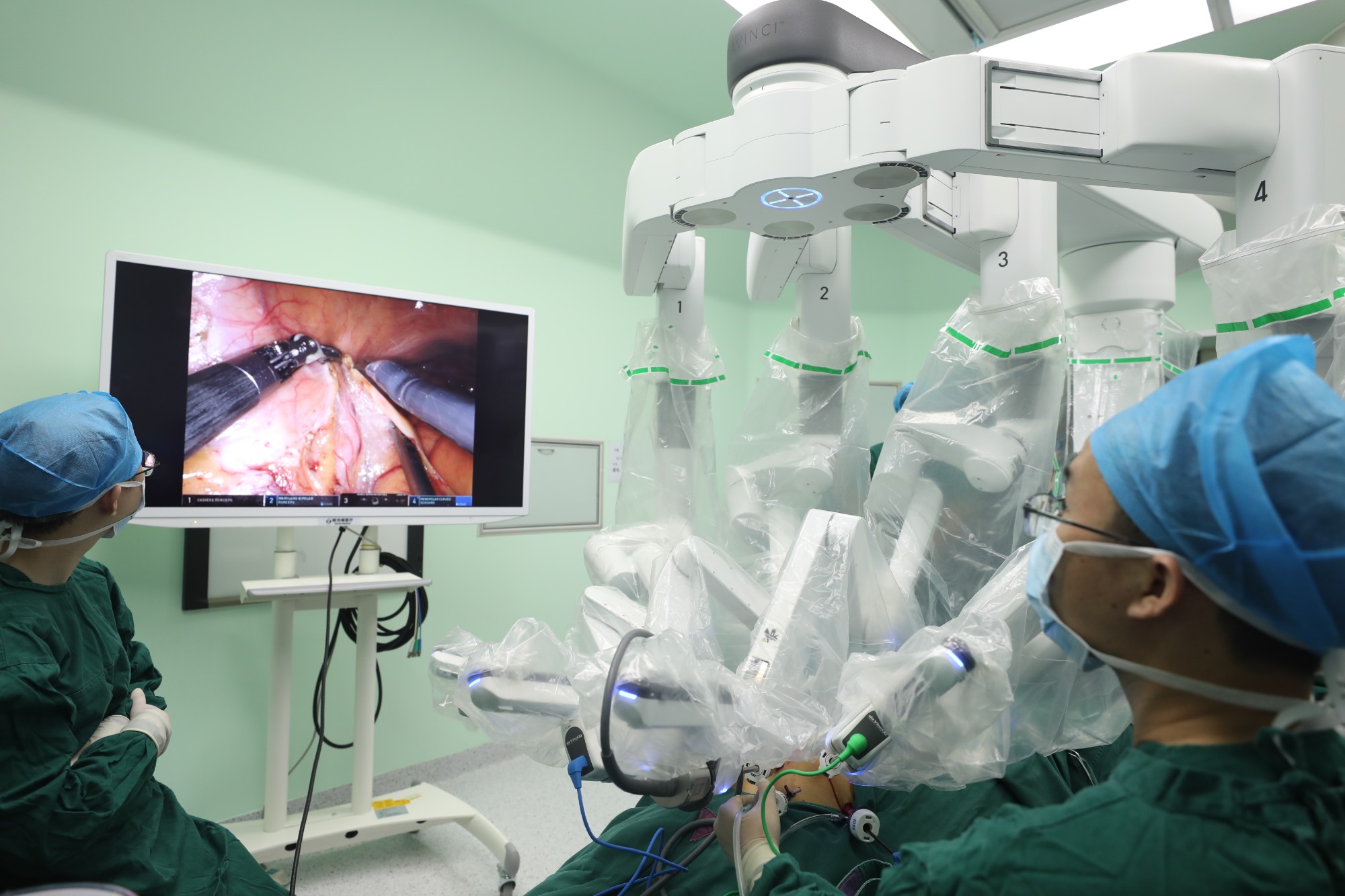 9月12日,广西壮族自治区南溪山医院运用最新引进的第四代达芬奇手术机器人成功完成了两例泌尿外科腹腔镜手术,这是达芬奇手术机器人在桂北地区的“首秀”,“医生+机器人”的手术模式也开创了桂北地区达芬奇手术机器人应用的先河。